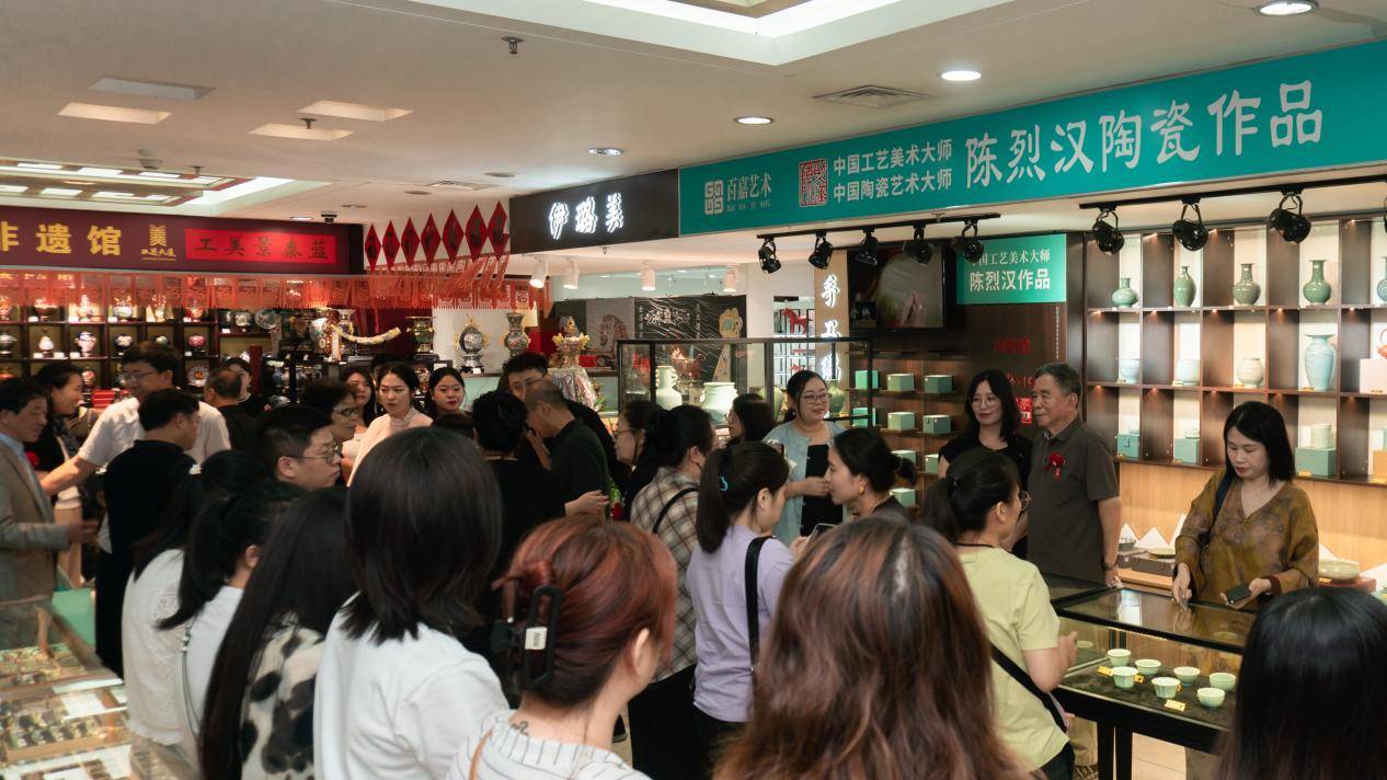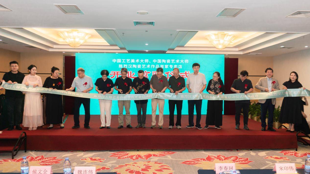 ▲来自工艺美术与陶瓷行业的协会领导、多位中国工艺美术大师、学术界专家与文化机构代表们,参观陈烈汉陶瓷艺术作品首家专卖店