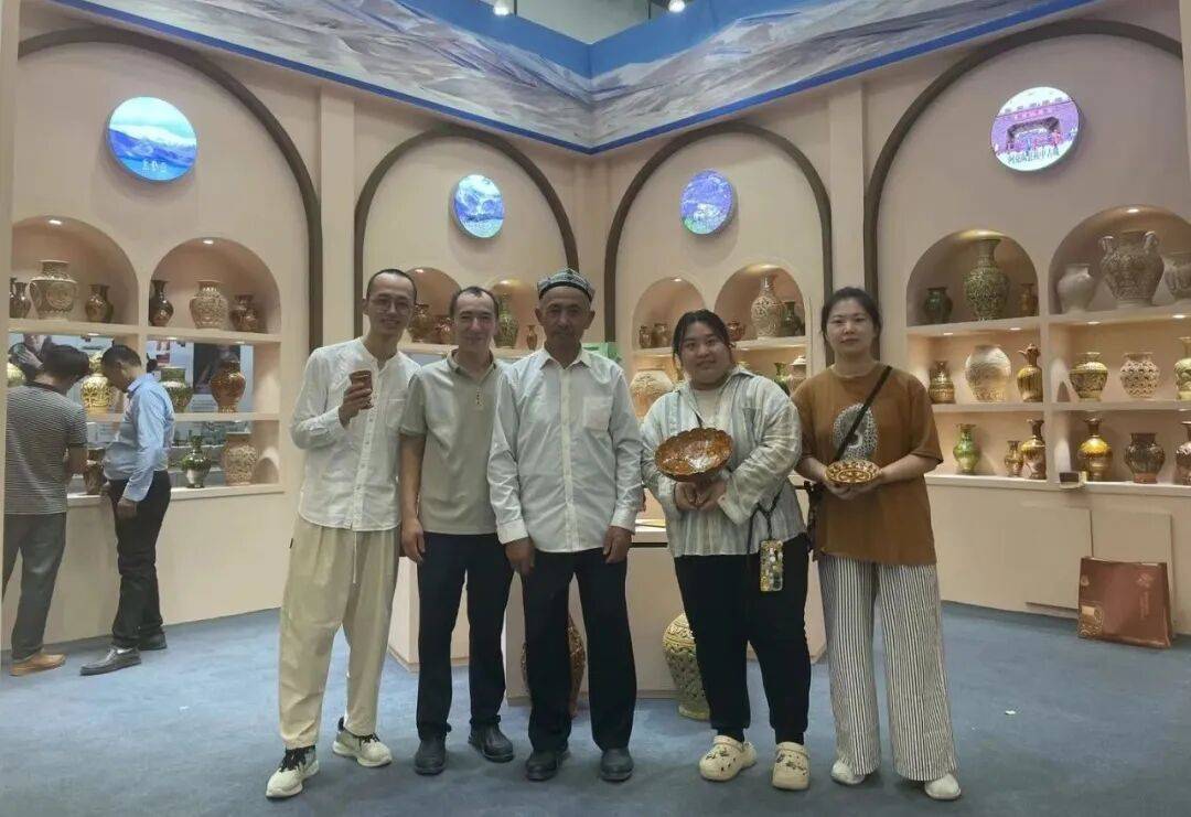 设计创新上,江西团队给出宝贵灵感:守正,守住地域特色和文化根脉;创新,让传统对接当代审美。在他们启发下,我们将“福”“中国”字样、牡丹花、石榴纹样等中华元素,与本土艾德莱斯绸特色结合,设计出的茶具深受喜爱。江西援疆指挥部还引荐合作社参加2024年景德镇陶瓷国际博览会。展会上,我们的“石榴花开”陶瓶大放异彩,奥布力塔力普叔叔激动地打来电话说,展位前人头攒动,现场销售额达5万元,还接到哈萨克斯坦等国家的订单。那一刻,“筑梦当代江西”对我们而言,不再是抽象概念,而是实实在在的发展机遇。