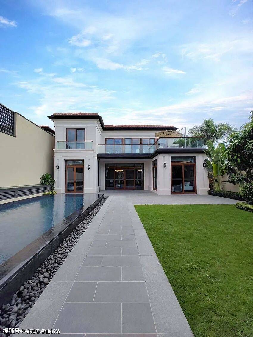 ·户外度假级别的方正大尺度庭院,融合湾区独有的亚热带景观绿植以及超大洁净泳池,满足家庭迷你露营、BBQ、萌宠游戏等