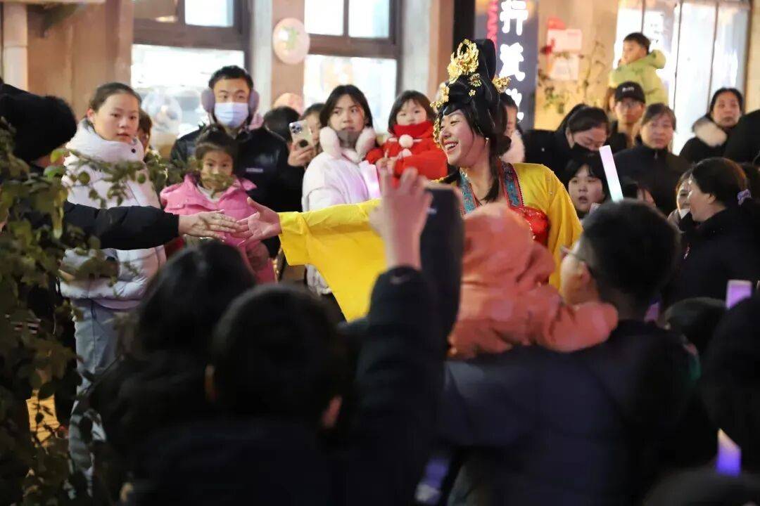 演员身着精致古装,扮演古典人物开展不倒翁表演,在指定区域与游客近距离互动,通过牵手、送银票等形式,增强游客体验感。表演动作优雅灵动,搭配古典背景音乐,贴合春节国风主题,打造网红打卡场景,吸引游客拍照传播。