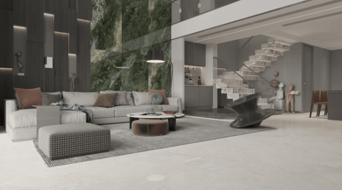 印美石英砖的产品特点十分突出。从外观上来说,具有高仿古质感,能够自然还原天然石材、粘土砖或木材的肌理与岁月痕迹。表面采用模具喷砂、浮雕、干粒等工艺,触感细腻,视觉古朴。通过多重施釉技术,实现渐变、斑驳等仿古效果,色彩层次丰富,避免了单一呆板的感觉。其图案丰富多样,有仿木、仿石材、仿皮革、仿布纹等,也有仿植物花草、仿几何图案等。烧成后图案可以柔抛、半抛和全抛,瓷质有釉砖的设计图案和色彩在所有陶瓷中丰富多彩。