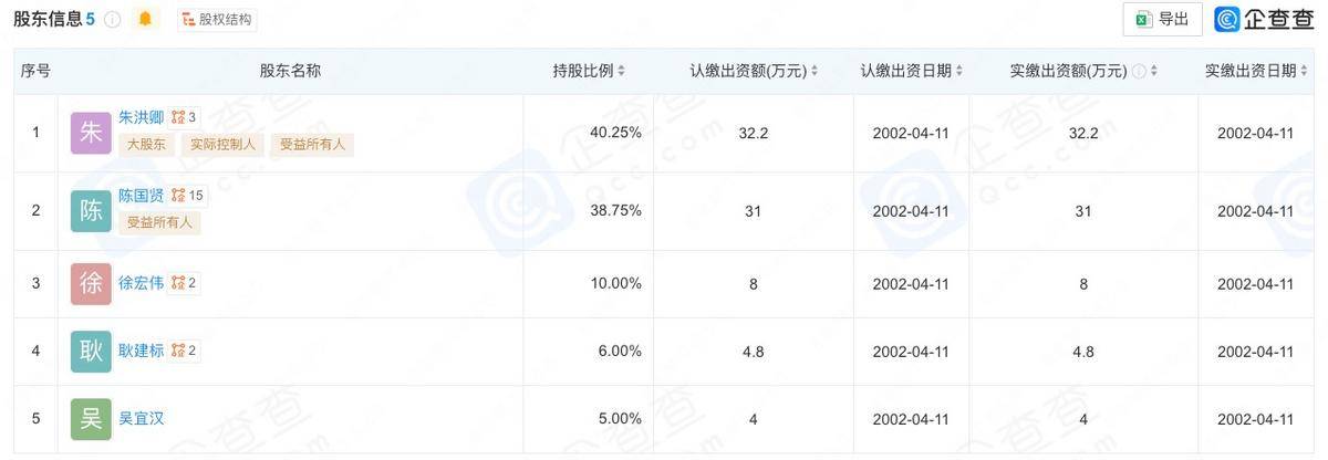 《民商财经》在企信网未搜索到天宇电子的资料。企查查存续记录显示,天宇电子成立于2002年,注销于2012年,实控人、大股东名为朱洪卿,持股40.25%;第二大股东是陈国贤,持股38.75%。企业经营范围包含:可控硅外壳,电子电力元器件,电器控制设备的制造、加工。