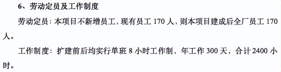 奇怪的是,环评文件中,扩建前后,电镀线的年运行时数均被标注为2,400.00小时,低于招股书披露的理论运行时间(3,600.00小时)。环评文件进一步披露,技改项目扩建前后均实行单班8小时工作制,年工作300天,合计2,400.00小时。