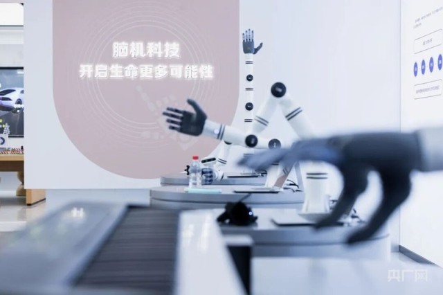 杭州未来科技城脑机科学创新示范中心展示的智能仿生手(央广网发 贾泽豪 摄)