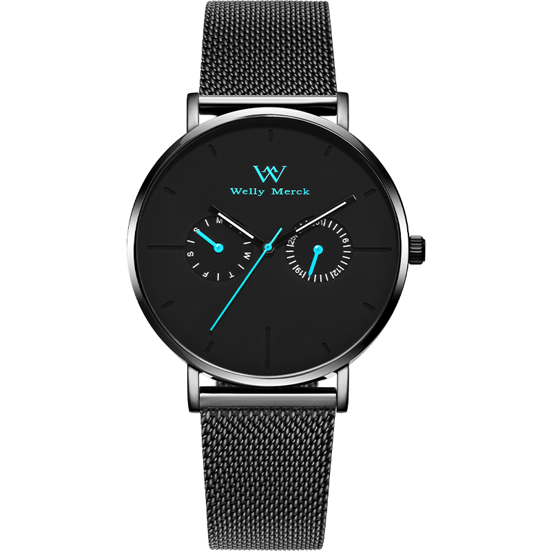 Welly Merck的这款男士手表以其夜光设计而备受青睐,确保在低光环境中也能清晰显示时间,适合商务会议或休闲聚会。